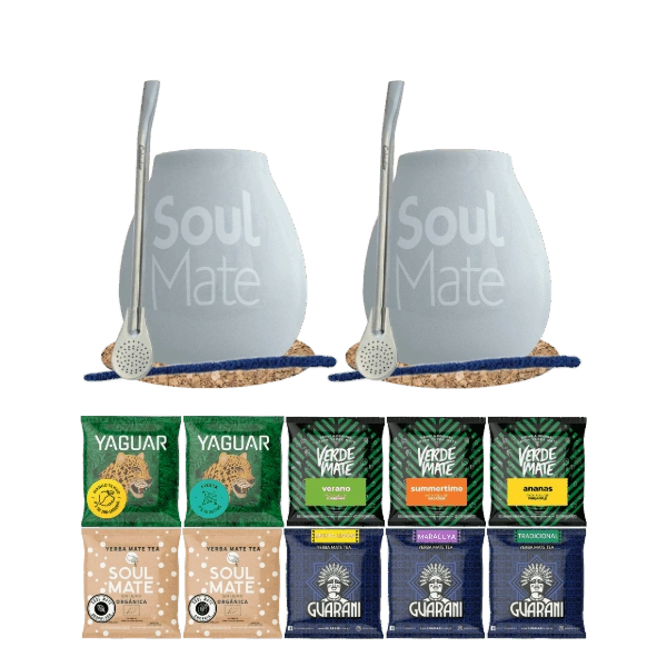 Yerba Mate Set 10x50g 2x Kalebas + 2x Bombilla