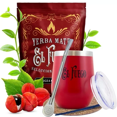 Yerba Mate Set El Fuego Energia Guarana 500g 0,5kg + TermoLid + Bombilla