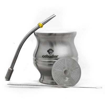 TermoColador – maté‑beker + zeef + bombilla – zilver