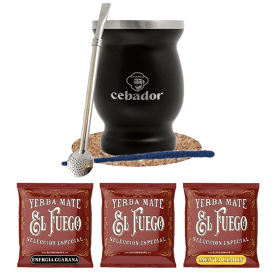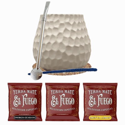 Startpakket voor twee personen Yerba Mate El Fuego 2×500 g + 2× Kalebas + 2× Bombilla