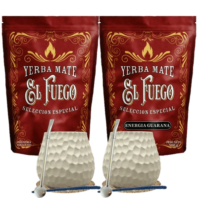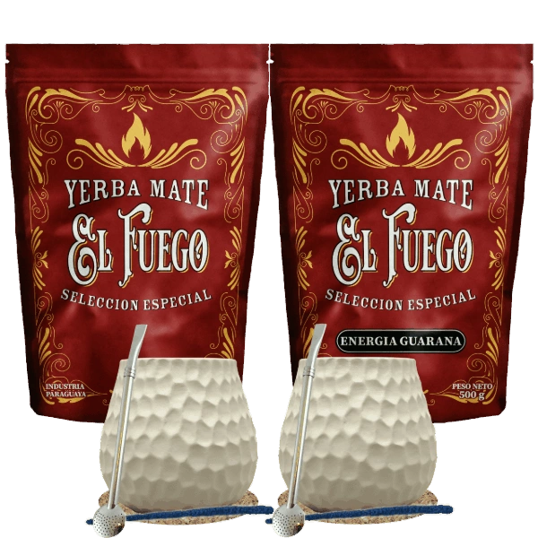 Startpakket voor twee personen Yerba Mate El Fuego 2×500 g + 2× Kalebas + 2× Bombilla