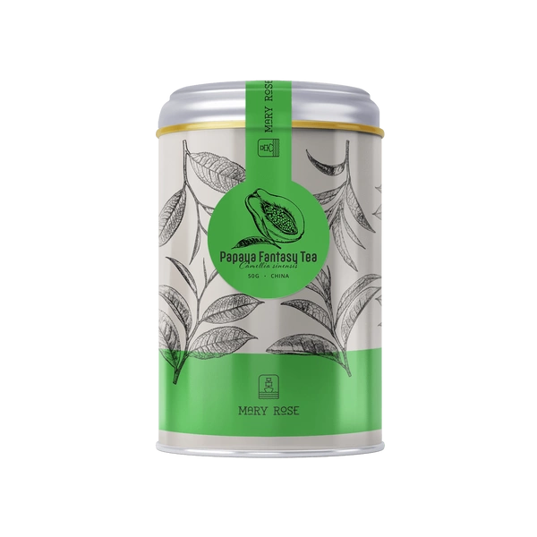 - Mary Rose Papaya Fantasy is een melange op basis van sencha groene thee en perfect geselecteerde kruiden en fruittoevoegingen. Vooral de gekonfijte papaja valt hier op, omdat deze een aromatische noot van zoetheid aan de compositie toevoegt.