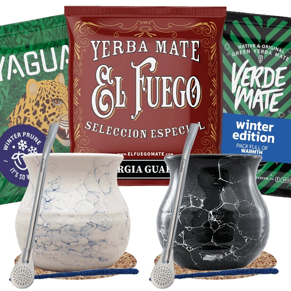 De namen van de smaken van yerba mate-monsters staan op het achteretiket, direct naast de ingrediënteninformatie.