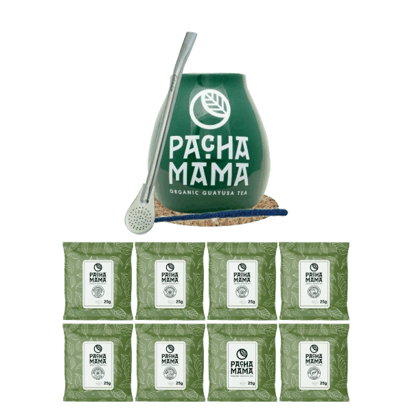 Yerba Mate Guayusa Pachamama: monsters 8x25g + Kalebas + Bombilla