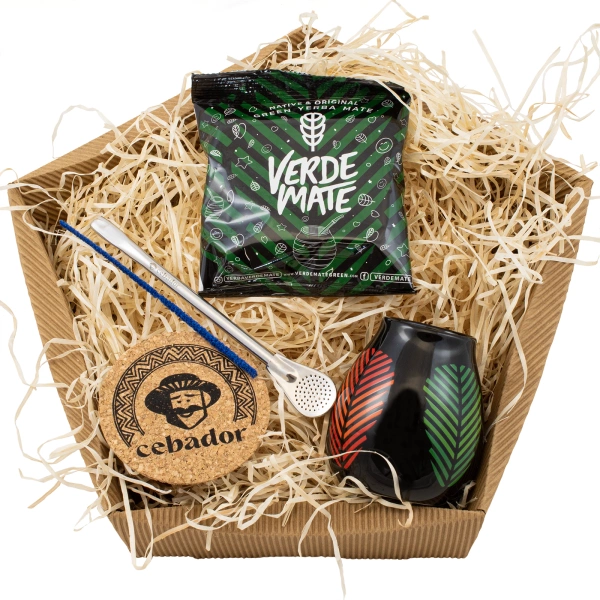 Geschenkset Yerba Mate: Verde Mate Frutos Tropicales 50g + Kalebas + Bombilla