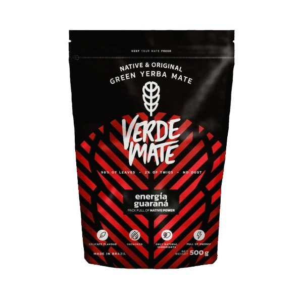 - Verde Mate Green Energía Guaraná is een stimulerende Braziliaanse yerba mate. Het bevat guarana, gojibessen, goudsbloemblaadjes en natuurlijke aroma's. Als je op zoek bent naar een goede bron van energie, dan is dit een topper!