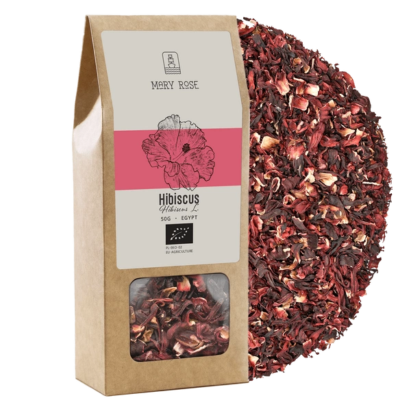 Hibiscus, ook wel malve genoemd, is een exotische plant die oorspronkelijk uit Afrika en Azië komt. Dankzij de zure smaak wordt de gedroogde plant gebruikt in mengsels met thee en kruiden. Deze hibiscus die we aanbieden komt van een biologische plantage en is biologisch gecertificeerd. De hoogste kwaliteit gegarandeerd!