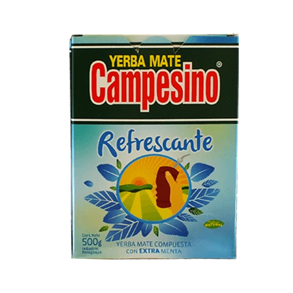 - Yerba Mate Campesino Refrescante 500 g 0,5 kg is een verfrissende yerba mate samenstelling met muntbladeren en muntolie. Het is een geweldig stimulerend en verfrissend middel.